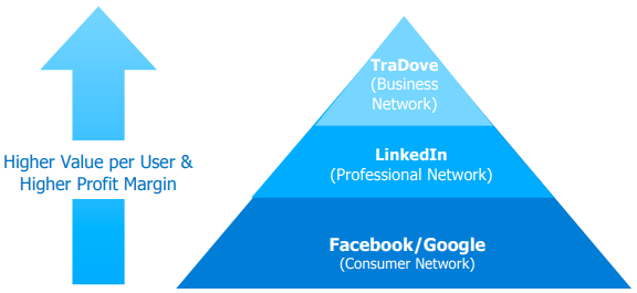 Social Networking Technology: TraDove uses open and exclusive social networking technologies along with the connection, network and collaboration mechanisms between businesses, products / services and companies.